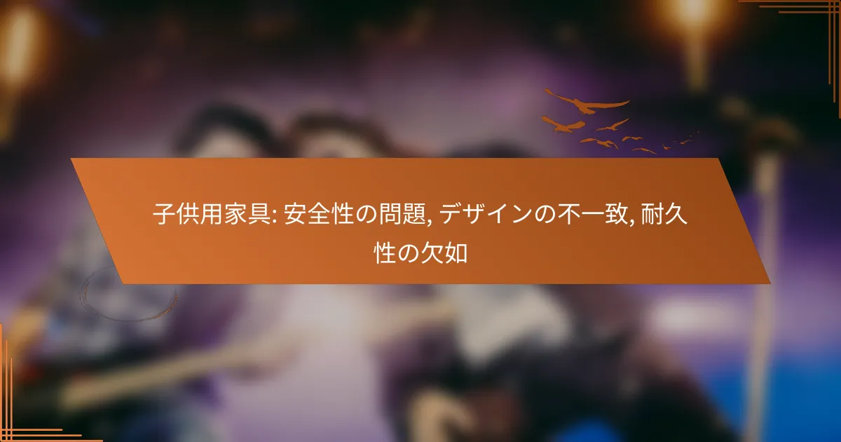 子供用家具は、安全性、デザイン、耐久性の観点から慎重に選ぶ必要があります。安全性の問題は設計や素材に起因し、子供の成長に合わせた適切なデザインが求められます。また、耐久性が欠如していると、使用中の事故や不便さを引き起こす可能性があります。