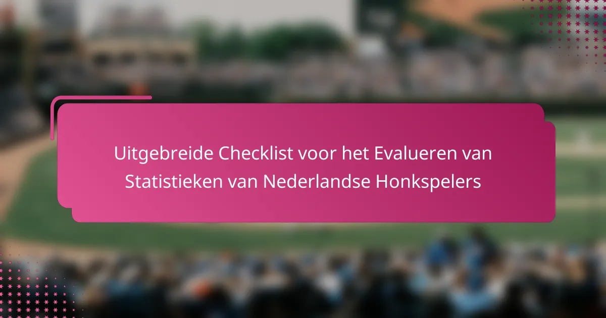 Het evalueren van de statistieken van Nederlandse honkbalspelers vereist een uitgebreide aanpak die zowel offensieve als defensieve statistieken omvat. Belangrijke statistieken zoals slaggemiddelde, on-base percentage en earned run average zijn essentieel voor het begrijpen van de algehele impact van een speler op het spel. Daarnaast bieden geavanceerde statistieken zoals Defensive Runs Saved en Weighted On-Base Average diepere inzichten, waardoor een meer genuanceerde beoordeling van de prestaties van spelers mogelijk is.